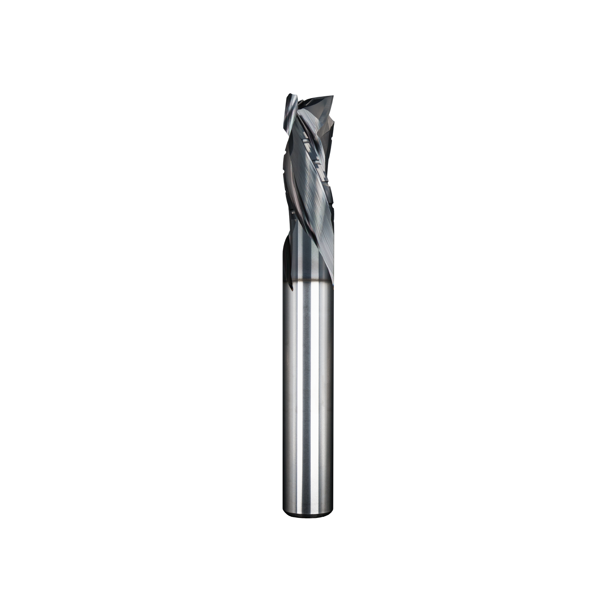 3-flute roughing compression spiral engineered for high-feed-rate nesting & pocketing. The 3-flute chipbreaker design allows for maximum material removal at exceptional speeds.